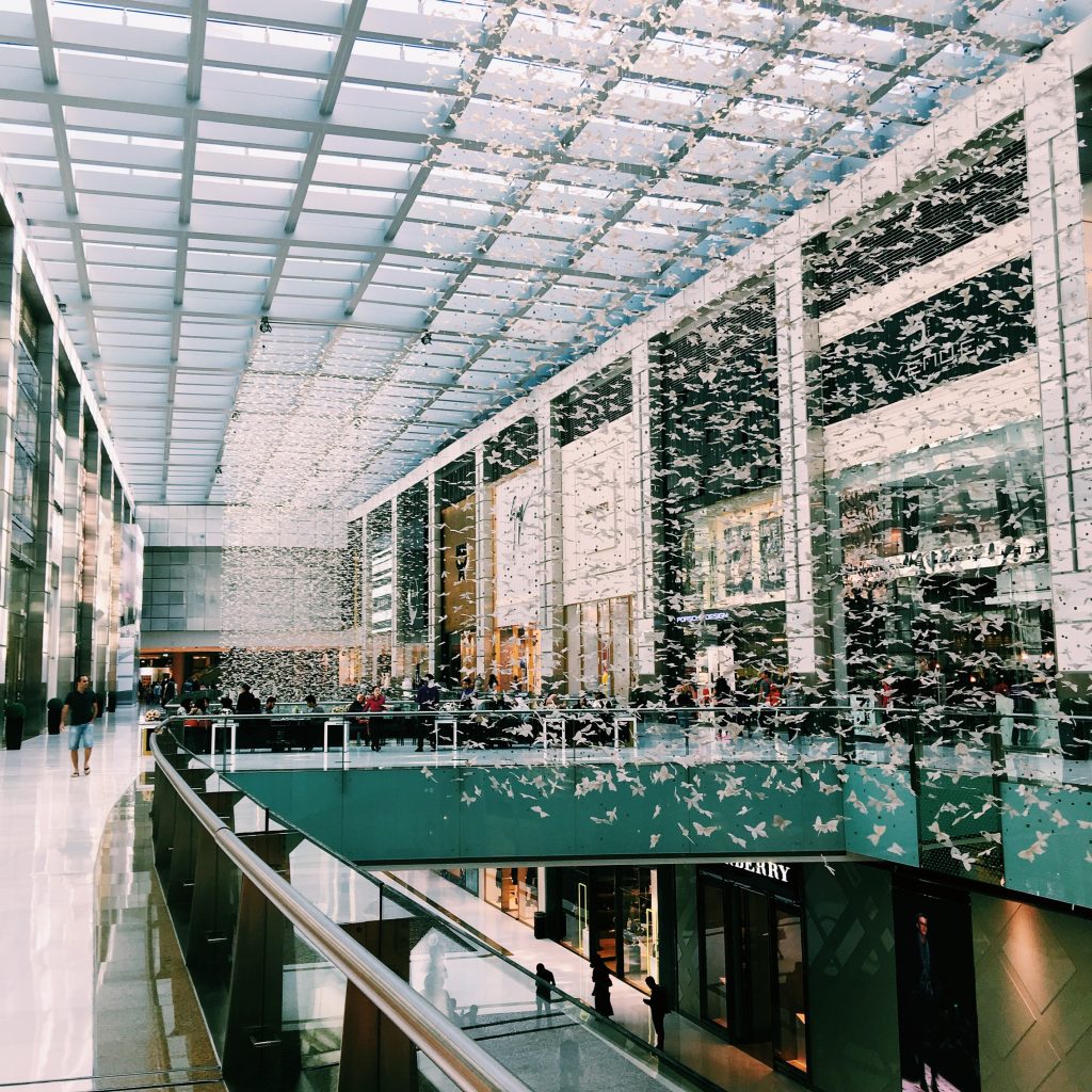 Thousands of paper butterflies inside the Dubai mall