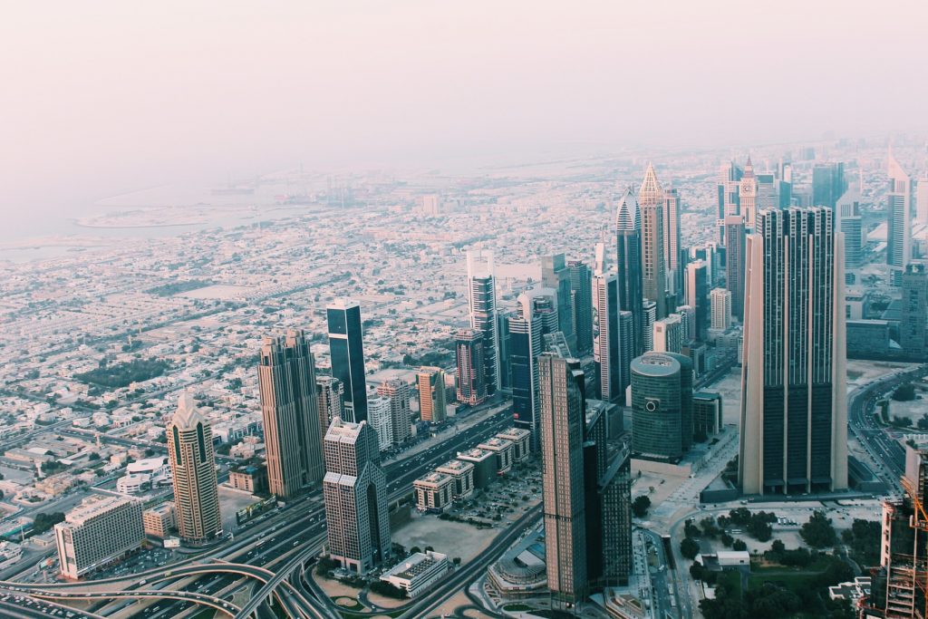 The Dubai skyline seen from atop the Burj Khalifa