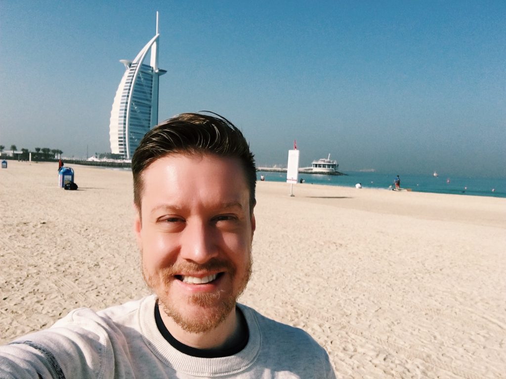 A happy selfie at the famous Burj al Arab hotel